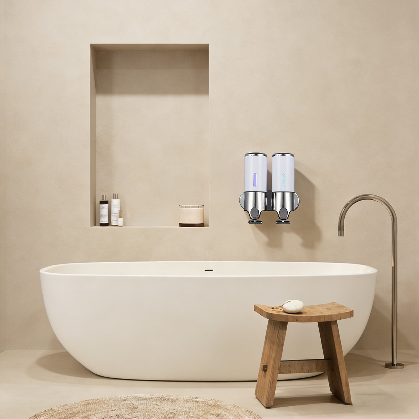 Easy set up soap dispenser for restrooms in restaurants, bathrooms at home and offices. Each bottle hold 500ml / 17 oz liquid. Can fill with shampoo, conditional, soap and lotion, almost everything you use daily.